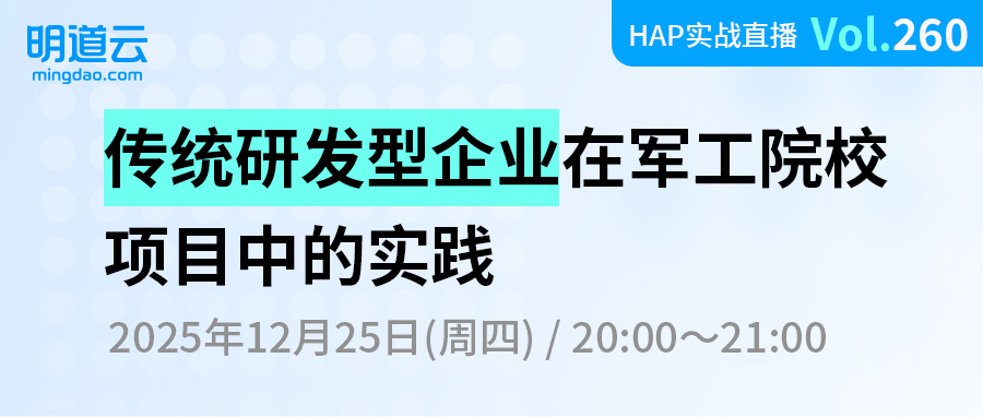 HAP实战直播第260期《传统研发型企业在军工院校项目中的实践》