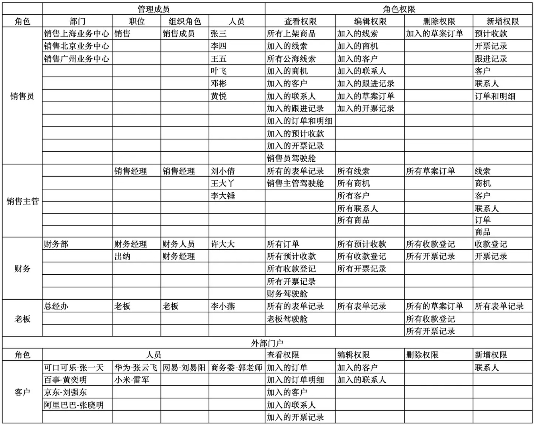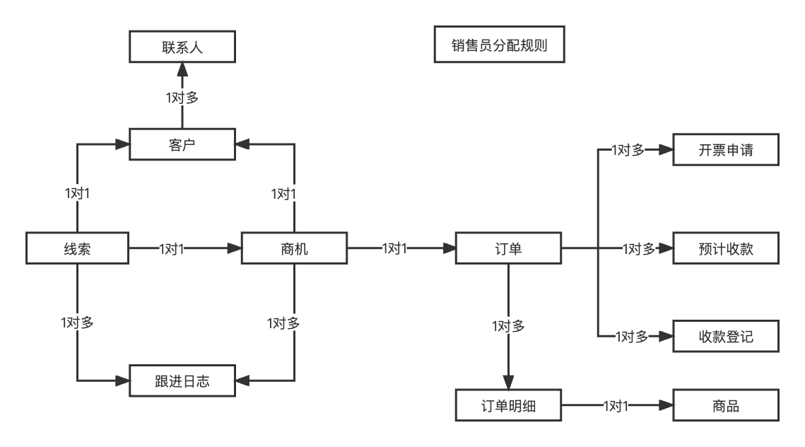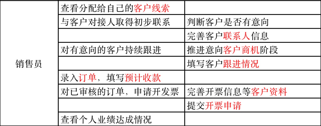典型 CRM 场景的角色—流程—数据示例
