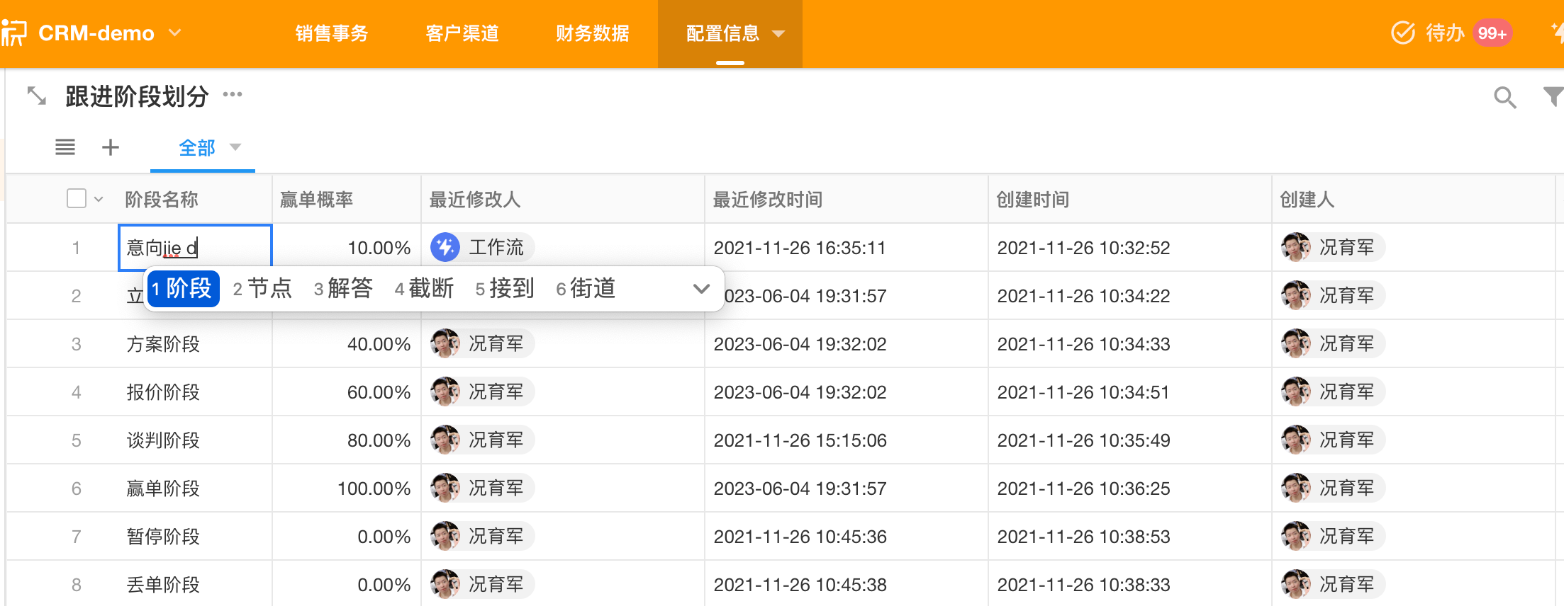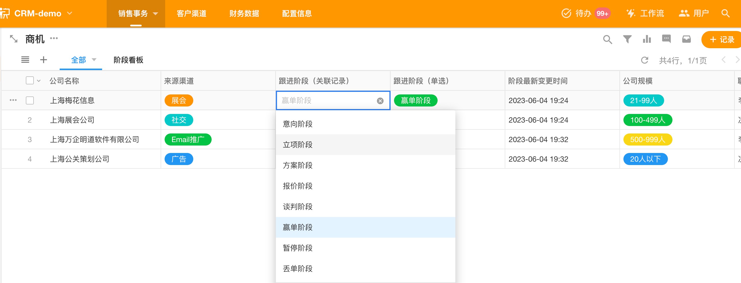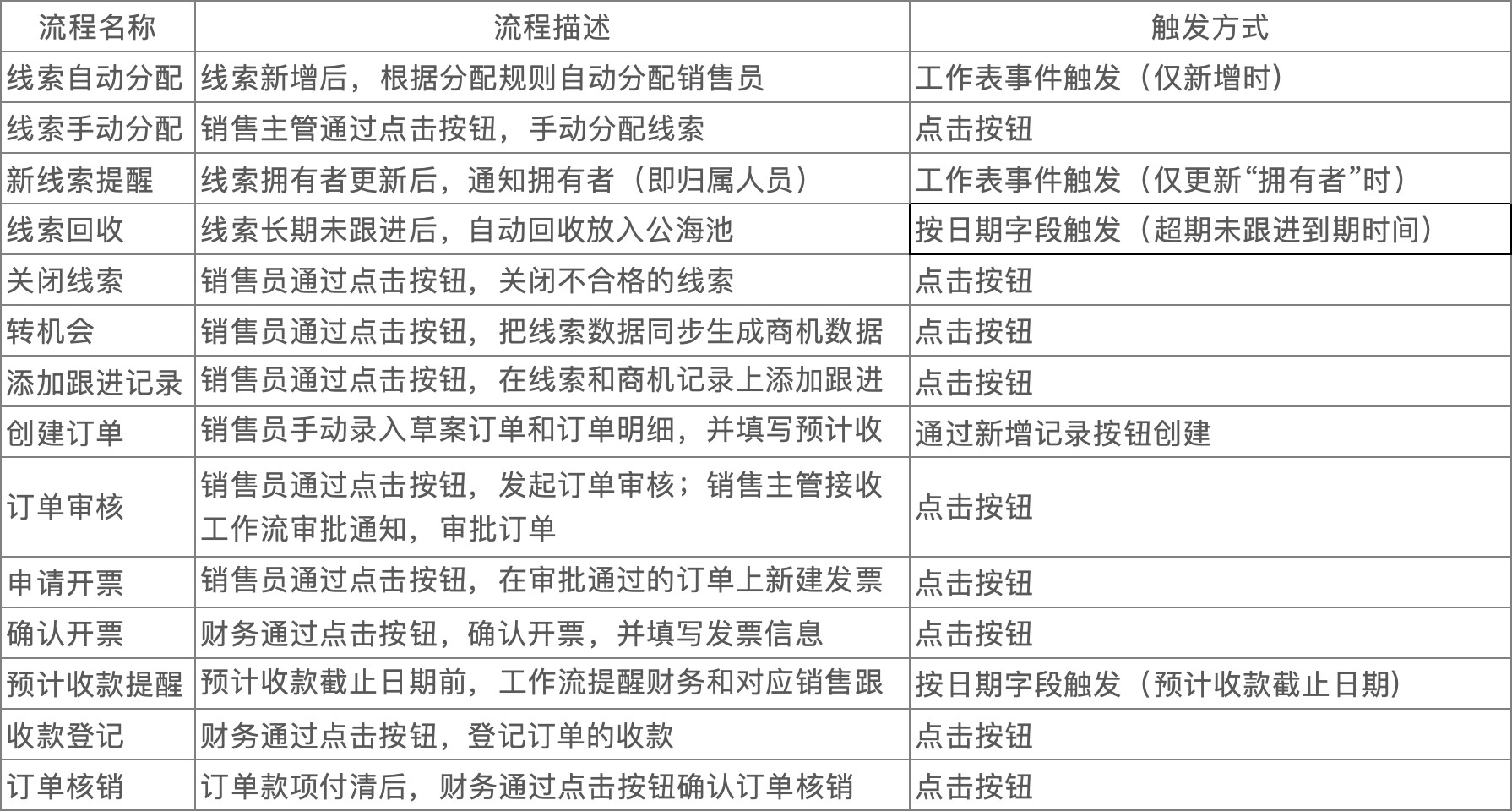 典型 CRM 场景的角色—流程—数据示例