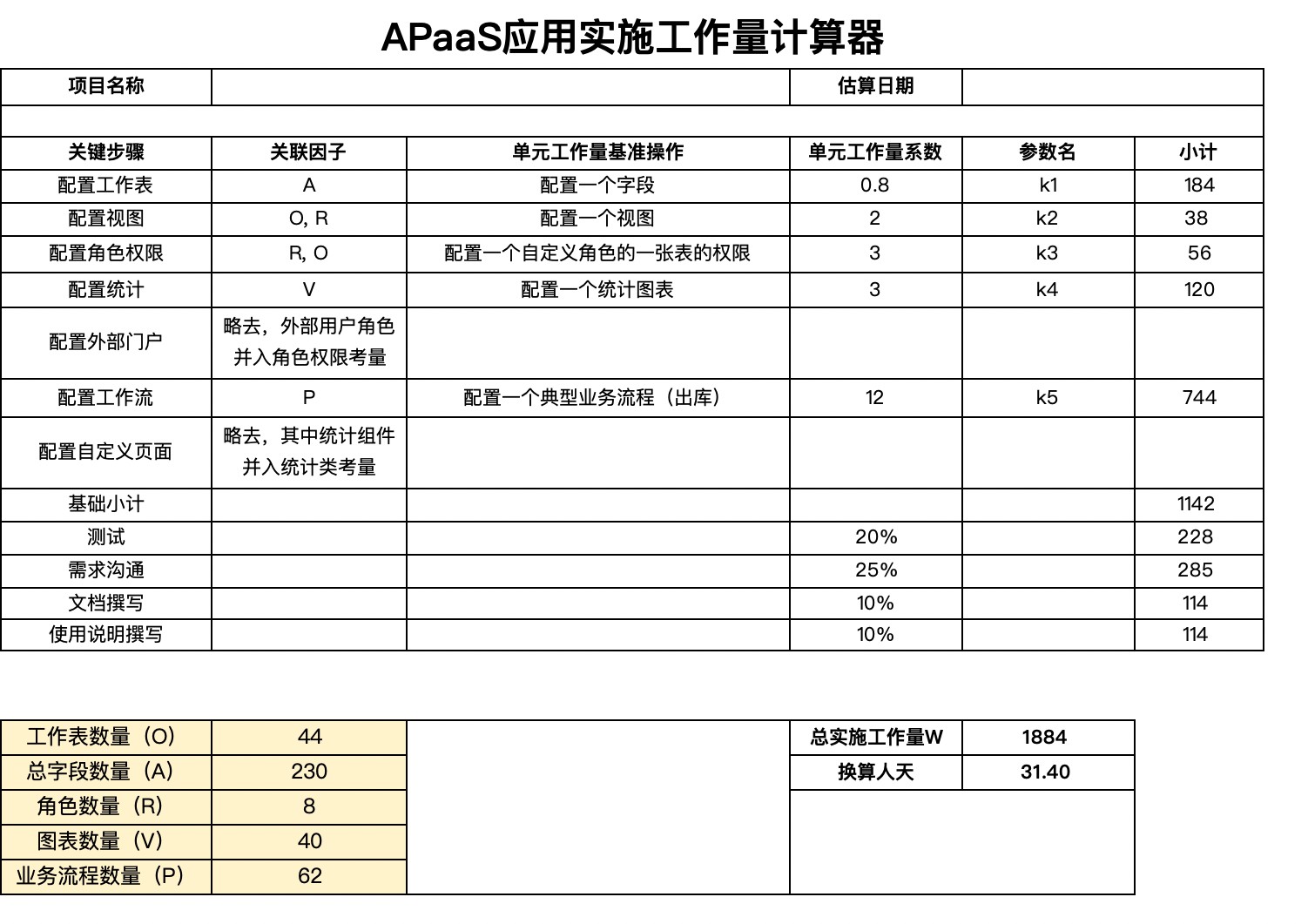 同时,本书也将“项目必然变化”纳入机制设计:通过变更请求字段标准、影响评估、优先级排序、版本与备份、关单与文档更新等措施,建立 APaaS 场景下更适配的变更治理体系。 另外,书中给出了面向交付团队的工作量估算思路(围绕对象/字段/流程/角色权限/统计等要素进行量化),为报价、排期与交付承诺提供“可计算”的依据。