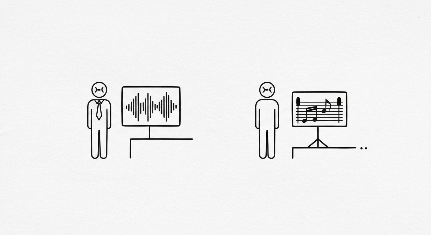 一个很好理解的类比来自 AI 音乐:有些工具会直接生成音频文件;也有些专业软件会借助 AI 生成可继续编辑的乐谱。生成之后,用户还能在可视化界面里精修。音乐里的“谱曲”本来就叫 composition,这个类比很适合解释企业应用的两种 AI 范式:一种偏“直接生成结果”,另一种偏“生成可编辑结构”。