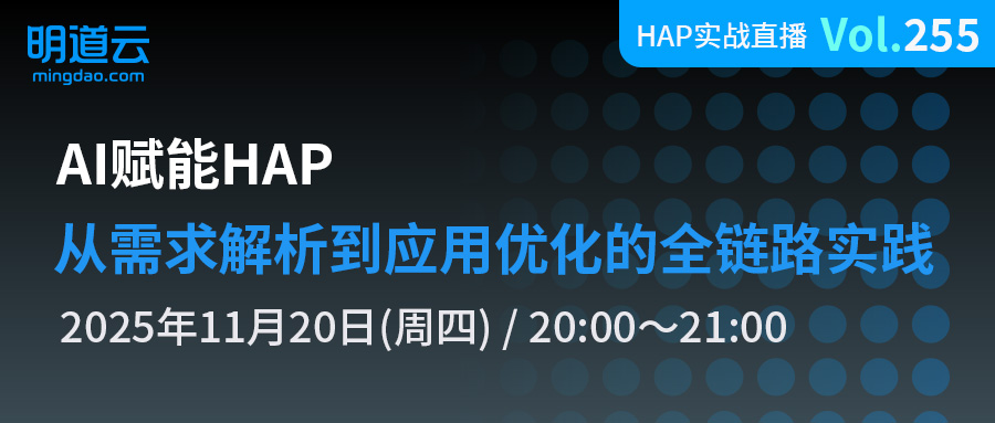 HAP实战直播第255期《AI赋能HAP:从需求解析到应用优化的全链路实践》